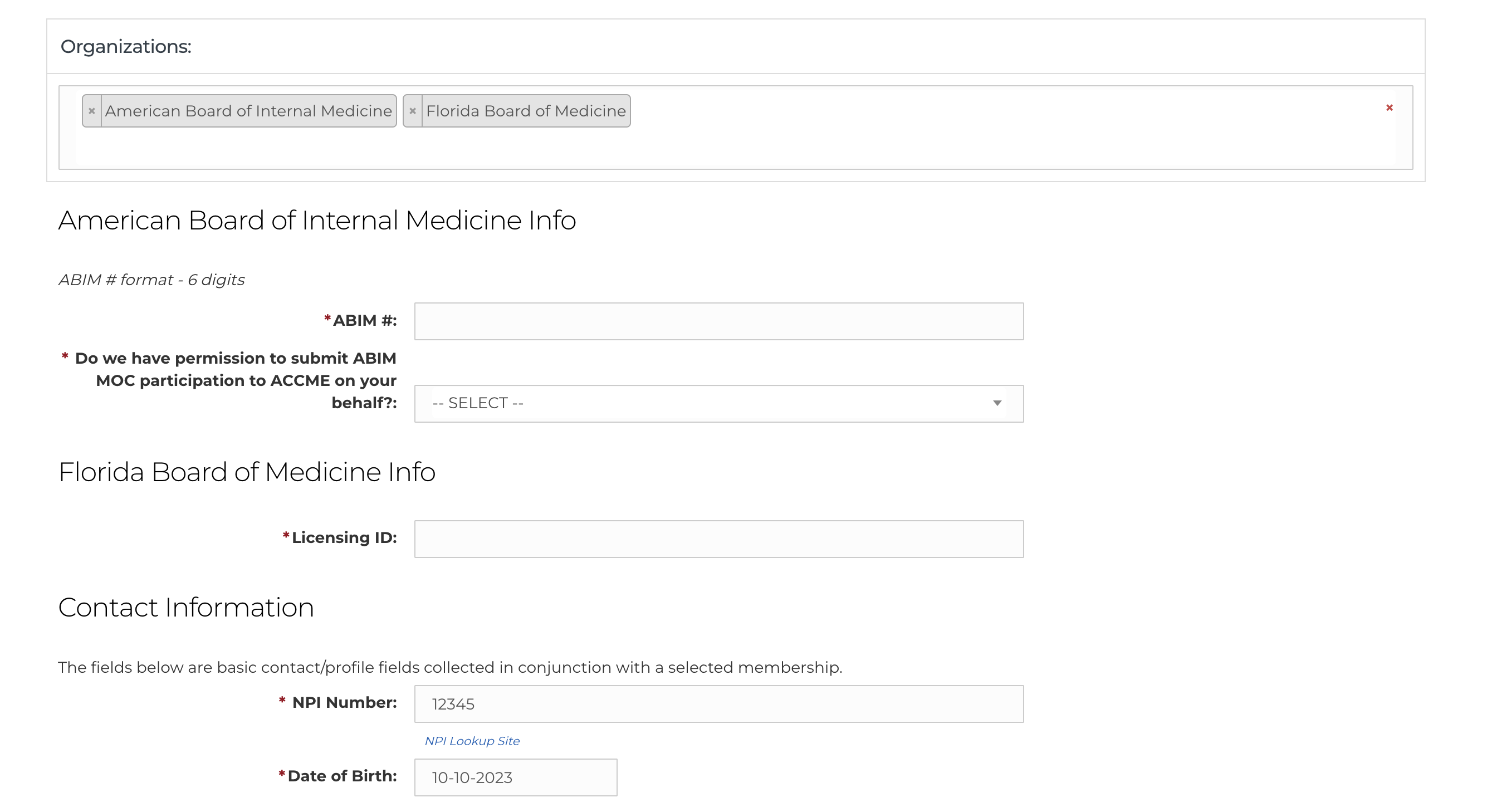 - The state licensing boards can be added to your site by our team and will appear under the "Organizations" drop down along with any other existing boards, i.e. ABIM, ABS, etc.
