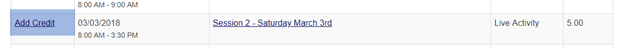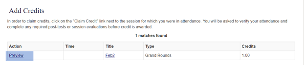 When the user clicks on the ‘Claim’ link for an already claimed Activity they would just see a ‘Preview’ option unlike the ‘Add credit ‘option that is available for unclaimed Sessions.