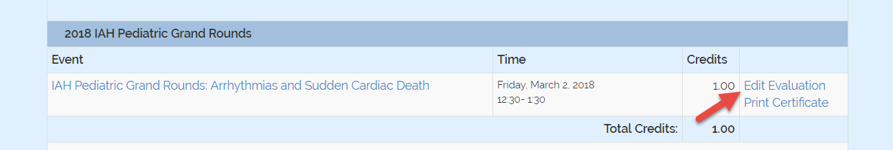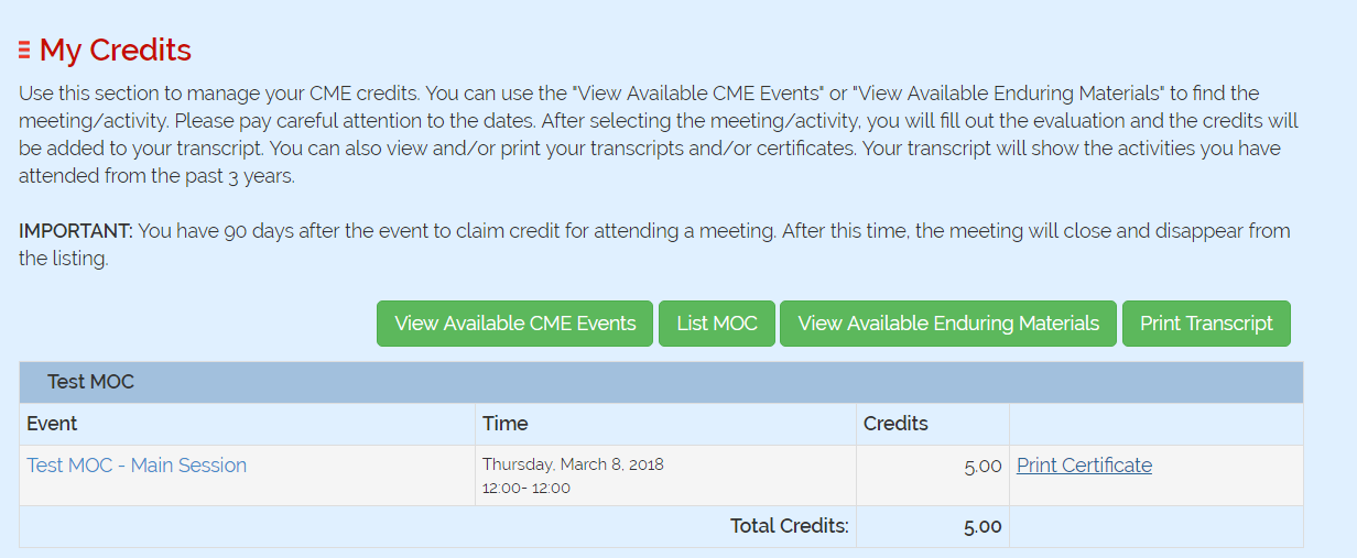 You will be taken to the 'My Credits' page from where you could edit the evaluation if required and 'Print Certificate'. This Certificate will only give you CME Credits without any MOC points.