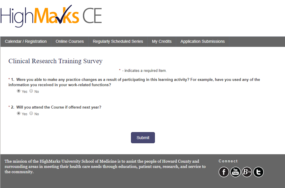 Click on the link and the survey opens as below. Complete the form and click on ‘Submit’