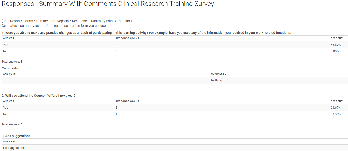 Run Report > Forms > Primary Form Reports > Responses - Summary with Comments > Select the form and Run report