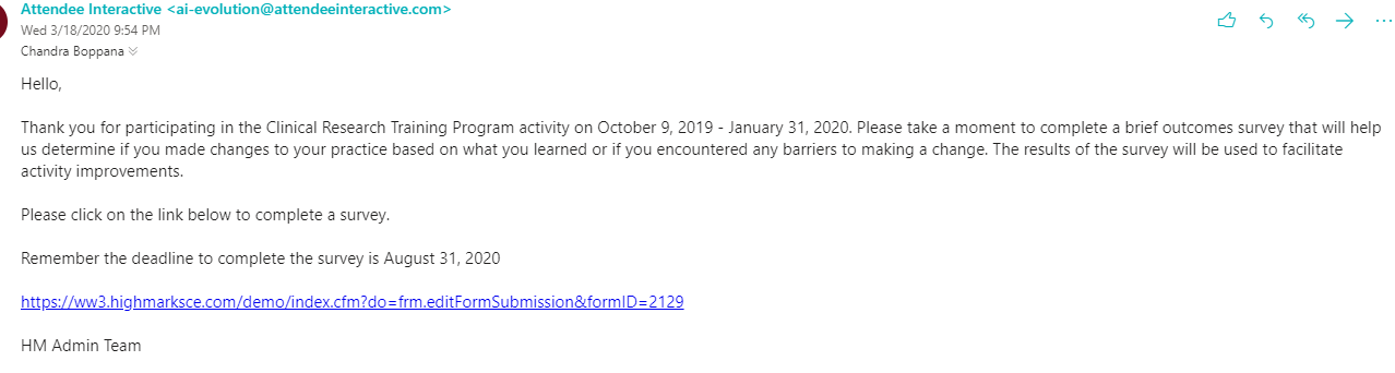 Step 4: Sending the email to the participants (Example Activity: Clinical Research Training Program)