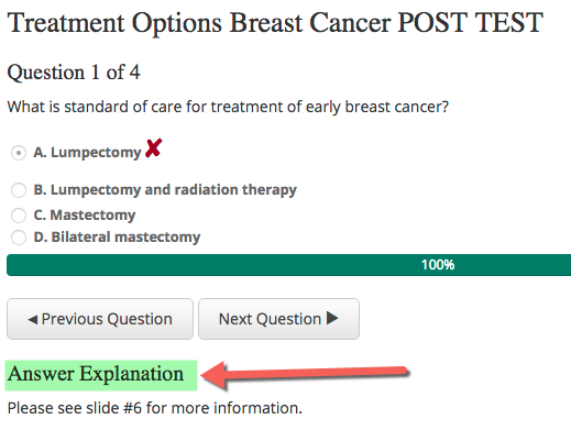 There is an option within each Post-Test Question to add an 'Answer Explanation' To set up Answer Explanations, please follow the instructions in the related article.